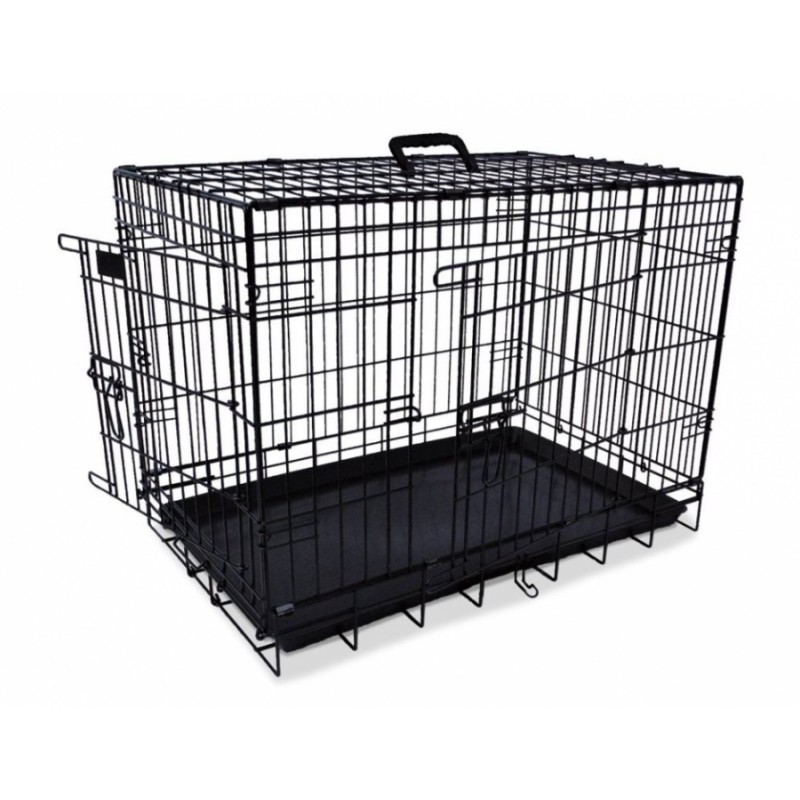 Černá transportní či výstavní klec. Úprava komaxit. Snadno složitelná. Plastová podlaha, která je odnímatelná, pro snadnou manipulaci a čištění. 64x48x54cm (délka x šířka x výška)