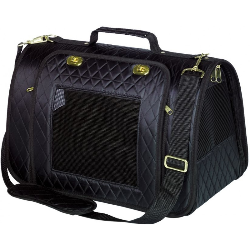 Integrovaná karabina uvnitř tašky zabraňuje zvířeti ve vyskočení ven. Větrání zajištěno ze 3 stran, zaručuje tak cirkulaci vzduchu uvnitř i při zavřené tašce. Velký vstupní otvory je možné zcela otevřít. S ramenním popruhem a rukojetí.